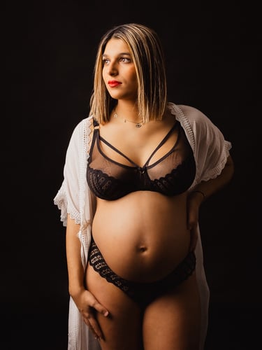 Vous pouvez opter pour des tenues sophistiquées, en robes fluides ou lingerie délicate, et pourquoi ne pas essayer le nu artistique ? C'est l'occasion parfaite pour explorer cette dimension de la photographie de grossesse et capturer toute la beauté et la sensualité de votre corps.